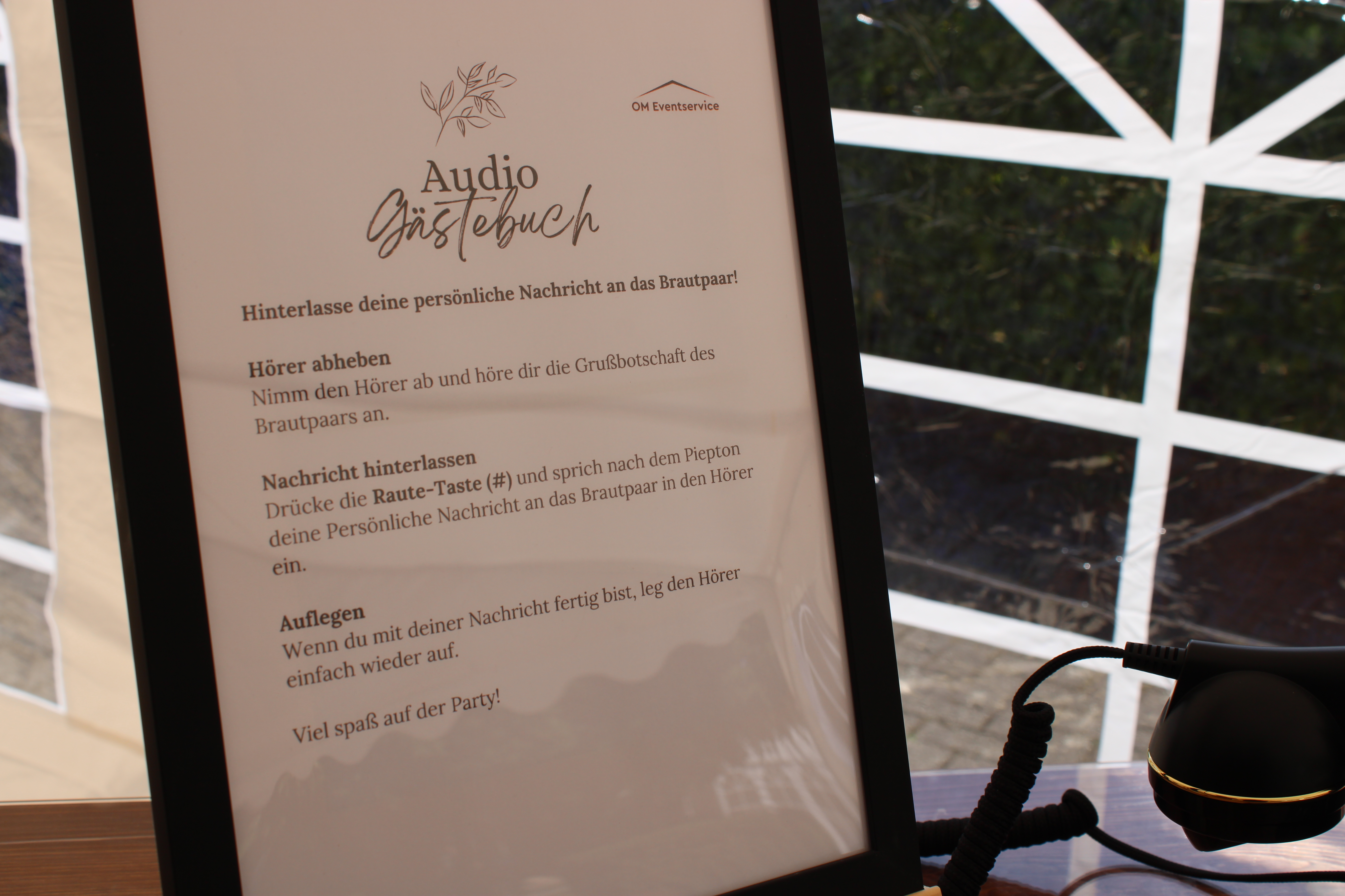 2. Auf Eurer Feier können die Gäste ganz einfach Ihre Grußbotschaft auf das Telefon sprechen.